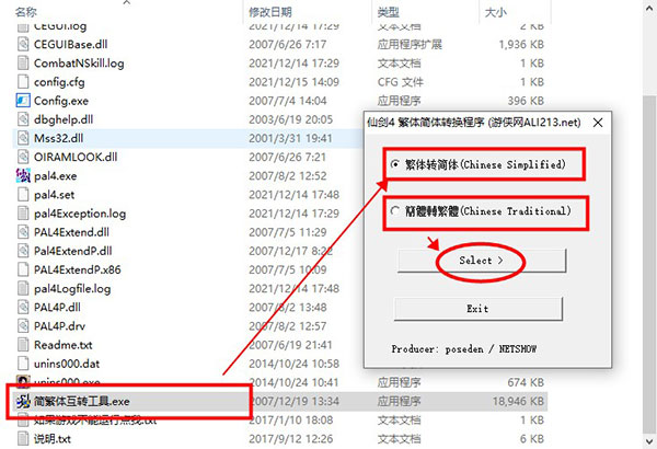 1、在本站下载仙剑奇侠传4单机版游戏压缩包后,解压打开先启动简繁体互转工具,在此可对游戏中的语言进行切换,包括繁体、简体俩种语言,玩家根据自身喜好切换即可;