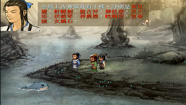 14.回到雷夏泽后,却只看见垂钓老人,打听之下知道师伯已经病故,想了一下后,靖仇决定回到大梁去找师伯母。乘船来到大梁后,在街上遇见师伯母的孙女,在她的带领下来到师伯母家中。从师伯的遗书上得知要对付魔兽还有一人,就是传说中的东海仙人。但是现有的船并不能出海,经师伯母介绍知道大梁城中有一赵姓工匠会造海船。去到隔壁的房间让赵工匠造船。三日后,大船造好,三人向东海进发了。谁知在海上遇见了一条大鱼,将船装翻,三人也被水吹到了一个岛上。在岛上兜了几圈后,遇到了氐人族的两个人,经过一番遭遇战后,出来一位氐人族女王。原来这里竟是那条大鱼的肚子里,那条大鱼也是上古神兽,名为巨海。说完后女王邀请三人去皇宫说话。(里面的一间房间里有遁形浮沙,别忘了拿)与女王交谈后,靖仇答应帮她一起对付黑龙王。坐着鲸鱼向黑龙王处游去。(那个水底迷宫蛮厉害的,记得出口在西北方向)走到龙宫的尽头就看见黑龙王了。靖仇三人全力向黑龙王杀去。打败他后,他却用计让玉儿拿下了崆峒印,使得氐人族的人都一下子变老了。虽然错误已经不能弥补,但玉儿还是和靖仇一起回到氐人族的王宫向女王道歉。玉儿为了表达对大家的歉意,毁了自己的容貌。几天后,女王为此也非常后悔,表示要送靖仇他们去仙人岛以缓和一下自己内疚的心情。