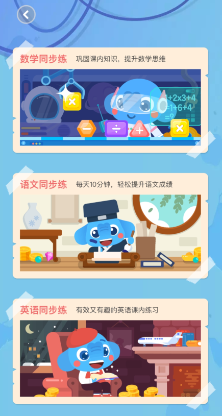 专属学习主页与学习档案,结合卡通学习伙伴,打造符合孩子特点的个性化学习空间,提升学习参与感与持续性。