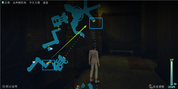 1、进入无尽传说重制版中,过完剧情后,需要去到达利姆医校,可以跟着地图中的星星指示前往(三角形是目前我们所在地)。
