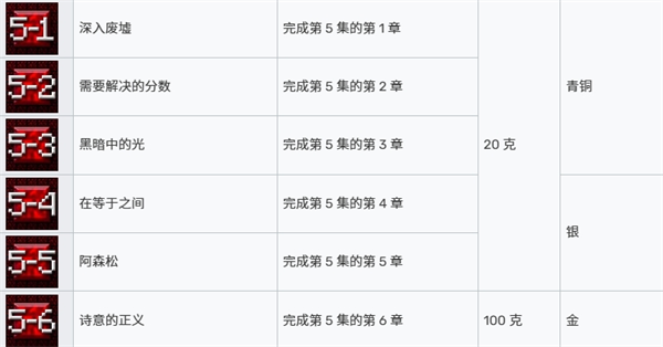 第五章成就表