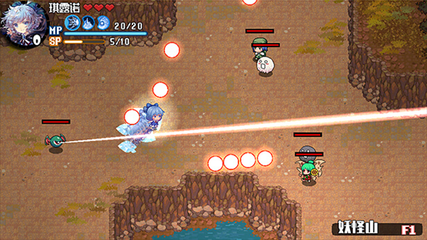 DASH:带有无敌帧的冲刺,用来躲避攻击,同时DASH时会附带一些特别效果,如琪露诺在冲刺时如果擦到敌人,会将对方短暂的冻结一小段时间;妖梦DASH时擦到敌人会直接产生伤害等,每个人物DASH的附加效果各不相同。