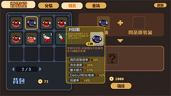 同时,装备可以通过强化,保留你中意的属性,最终制作出适合你的最强装备。