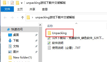 1、在本站下载好游戏安装包,得到Unpacking.rar文件,将得到的文件进行解压;