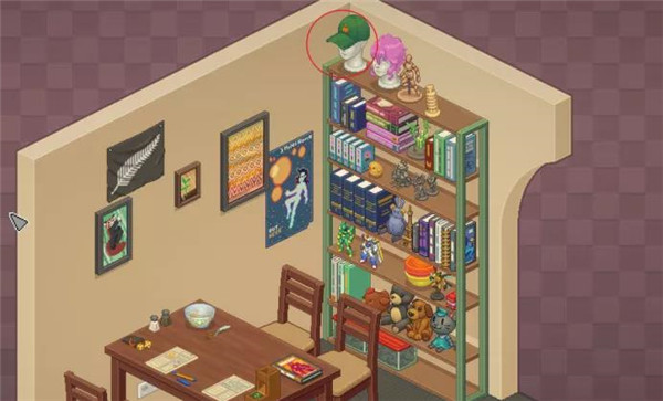 头戴帽子:把帽子拿到餐厅,给架子最上层左边的石膏头戴上
