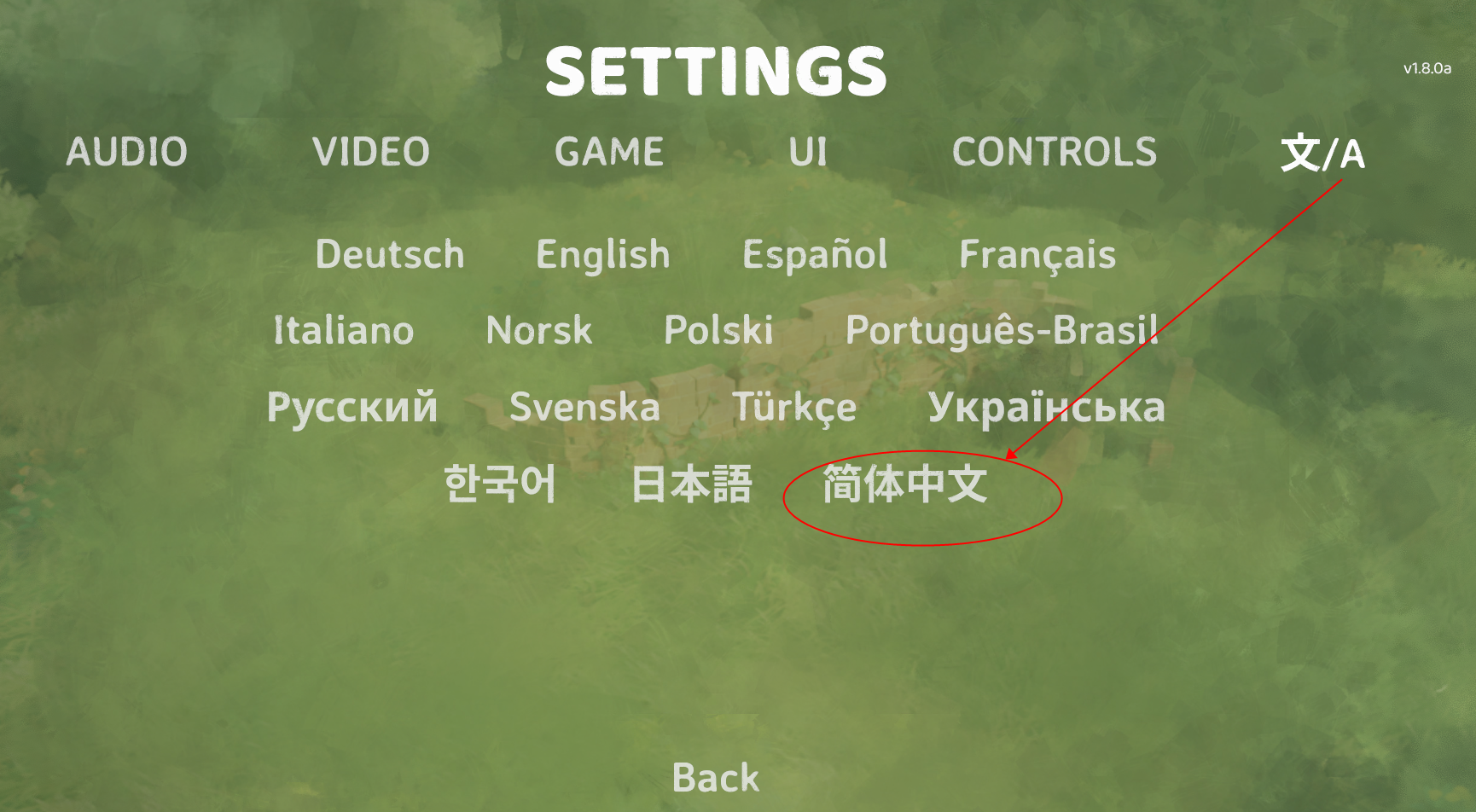 1、打开游戏点击设置(settings),选择最后一个语言选择。