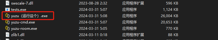 1、在本站下载解压好压缩包之后,点击打开“yuzu模拟器”文件