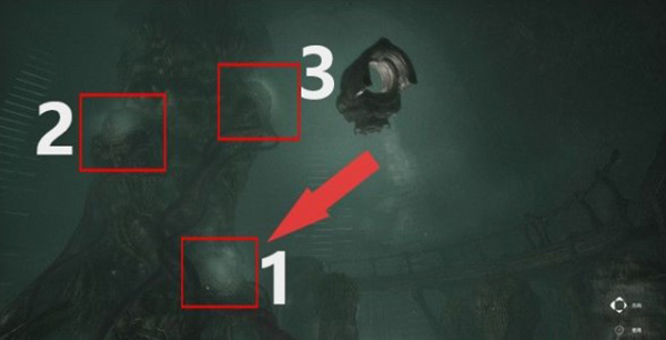 这个地方有两个控制台,右侧的控制台可以控制网状硬壳卵,左边的控制台可以控制一个小型的运输升降台。你需要完成这里的解谜,把图片中位置2和位置3的两颗有生命体征的硬壳卵,运送至位置1处。先运送位置2的硬壳卵,你将发现那颗卵是颗死卵,最后再运送位置3的硬壳卵,不过想要把它运送到位置1,你可能需要折腾很长时间。