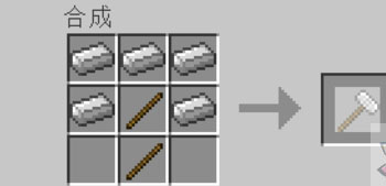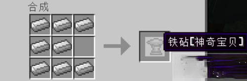 5.然后如图配方用铁制作精灵专用铁砧(非普通铁砧),以及一把锤子(可以是木头、石头、铁、金、钻石、铝),将铁砧放在地上后,手持球盖或者球座右键铁砧可以将其放在铁砧上(如图),然后手持锤子一直左键铁砧(锤子的材质越好所需时间越短),你会听到三次“叮”的声音,然后就会获得球盖或者球座。