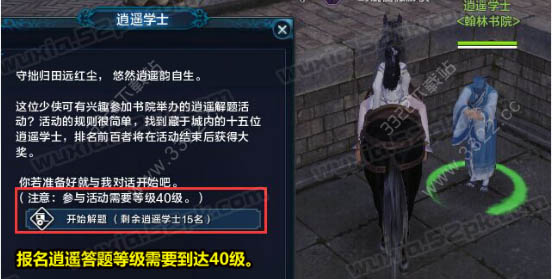 参与条件要求不高,只要玩家等级大于或等于40级即可开启逍遥答题玩法。