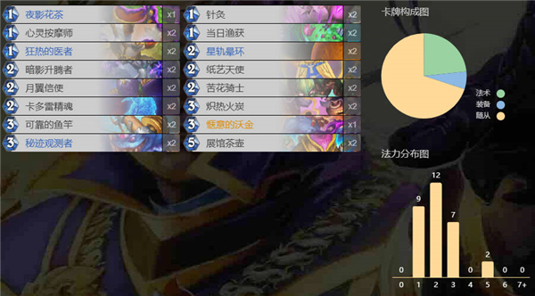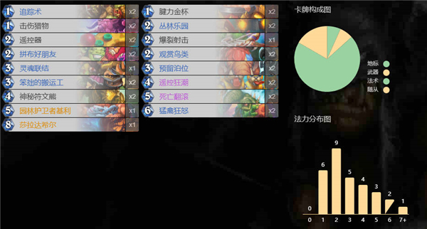 游戏中有超过600张卡牌,玩家可以通过升级、完成任务或开包获得。每个职业都有专属卡牌和技能,玩家可以根据策略自由搭配,打造独特的卡组。热门卡组如快攻亡语瞎、船歌骑等被广泛使用,玩家还可以通过复制代码快速导入这些卡组。