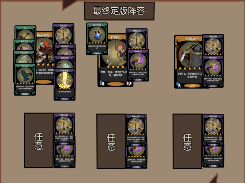 在经济基础(1500+)做完之后我们就要再次换套路了,只留侦探、刺客、戏法,他们三个各一张,然后把其他三个格子空出来另有用处;戏法身材如果超过了8w(我当时刷到10w左右)可以天平给持盾战士。