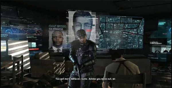 1、解救出人质(已死)后,费沙发现此人并非柯斌(化灰也认得),而艾萨克依旧确信他自己的情报准没错(看来这两人的斗嘴也是游戏一大卖点之一,费舍尔:劳资在卖命,你却给我说“好像是在这儿”!)。