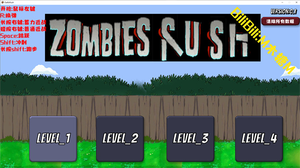 操作很简单,用鼠标和几个快捷键(shift、space、R)就能玩。游戏里每关难度递增,第四关特别难,需要小心应对。击败僵尸还能掉增强卡片,提升攻击力或者近战伤害。如果失败了也没关系,点击“restart”就能重新开始,不会损失什么。