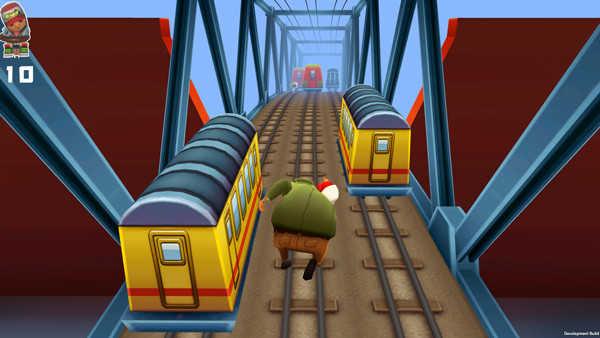 1、地铁跑酷采用3D立体视角,动感十足,画面颜色艳丽,可玩性强。