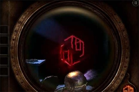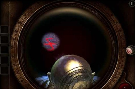 11、记得镶嵌在八角桌上的三个图案吗?拉近奇怪的投影仪或者说探照灯,戴上目镜,去找这三个图案吧!第一个在左中,类似Z字母翻转过的图案。