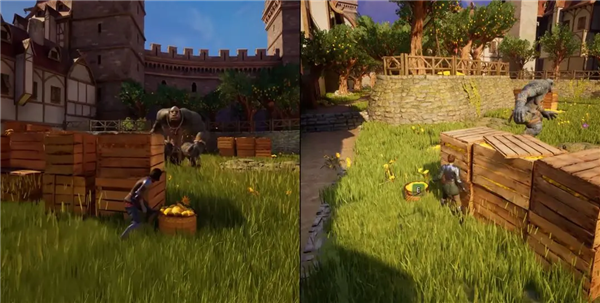 23、两人相互配合,扔水果吸引巨魔注意力,当巨魔看向其他方向时快速通过。