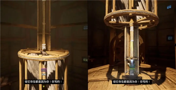10、需要一个人进行机器交互把类似电池的东西拔出,电力风扇就会有个缺口,抓住时机从缺口处抓取对面绳索。