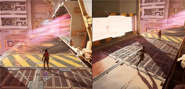 9、对准光圈使用抓取按键,就可以安全抵达对面。