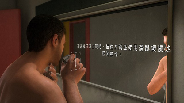 刮完胡子之后,不要出去,而是继续往卫生间走,去洗澡,全程跟着提示就行了。