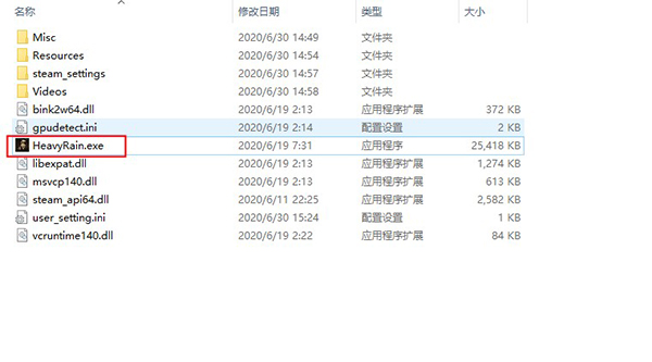 2、找到“HeavyRain.exe”双击打开;