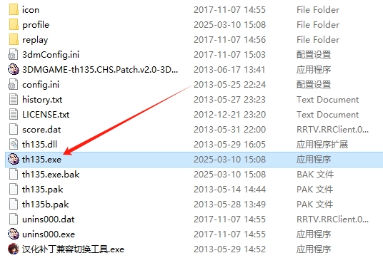 3、汉化成功后,点击th135.exe运行游戏。