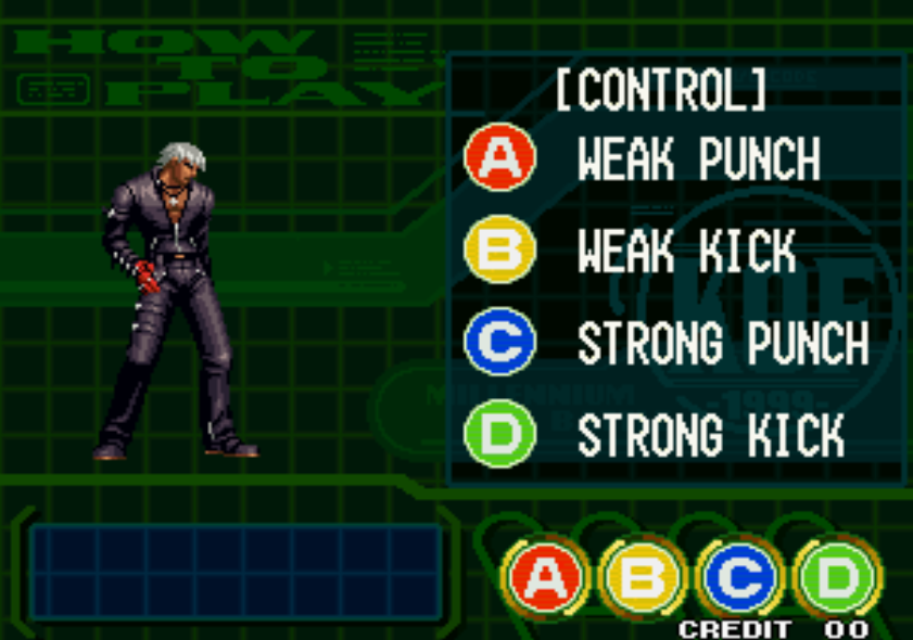 选人时必须有三个人物都选“?”(即随机选人,当然最好是四个都选“?”,这样机会会更大。),如三个随机角色中刚好同时出现K’、马克西马、二阶堂红丸、矢吹真吾、薇普、京-1、京-2这些人的其中任何三位的话,选择此三人出战并打败对手,在胜利后屏幕会显示调用京的指令。·在选人画面,将光标移动到“?”处,按住开始键不放,再按如下顺序移动方向:←→↑←↓→,太阳标志处出现京,现在就可以选他了。