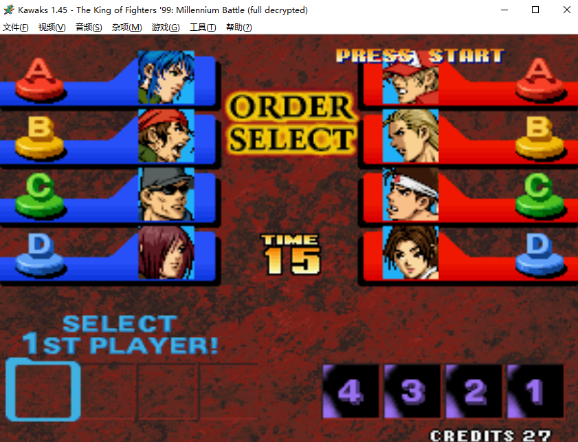 5、队伍中有八神庵(不能有草薙京,而且不能随机选到),会出现八神庵特有结局