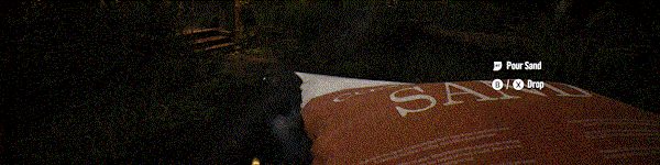 在“营地”关卡中,从门廊扔下 2 个水桶。