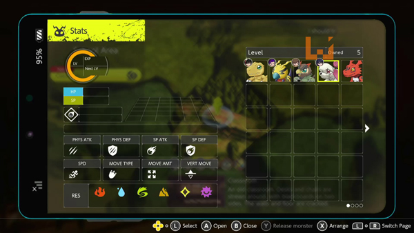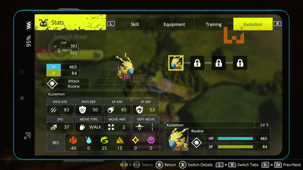 而抓到的野生数码兽则不同,它们可以在战斗外使用进化石板进化。在战斗中可以一直维持高阶形态并回复SP,这就导致同伴的数码兽变得用处没那么大,加上如果好感度不够的话无法进化到高阶形态。这显得野生数码兽来得更加有实用,并导致战斗中进化的系统设计有些失败。