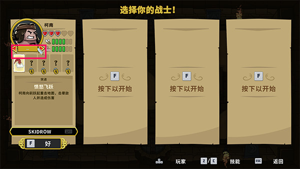9、点击英雄下方的切换栏,我们还可以更换不同的英雄。选择完成后首先按下“F”再按下“Enter”回车键即可进入游戏