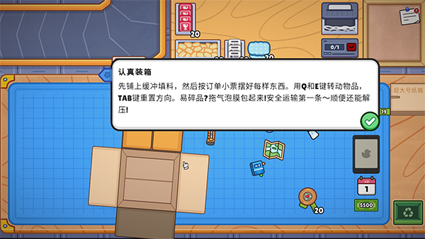 每一个包裹都至关重要!请仔细遵循订单要求,选择合适的箱子,并确保每个包裹安全送达。你手中的包裹不只是一份令人感到充实任务,更承载了顾客收到货物时的快乐与幸福。