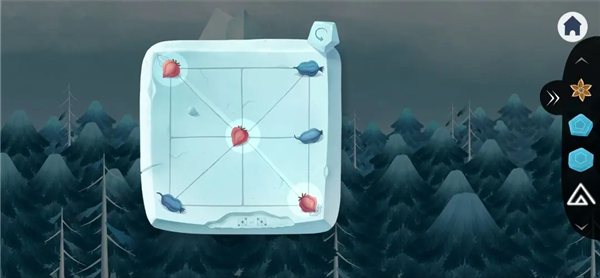 9、退出冰城堡,左划进入最左侧冰屋,把蓝果子和红果子放上,并把红果子调整成对角线,进入冰屋。
