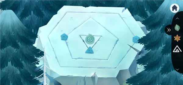13、退出城堡,点击守护神触发对话得到三角形冰块,左划进入祭台把冰块都摆上