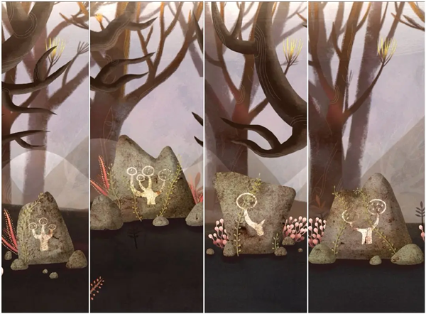 1、注意树上的组合图案,点击长角的雄鹿白影,只能点击雄鹿,点击雌鹿次数会重置。
