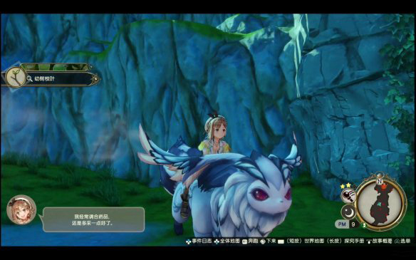 除此之外本作还增加了许多动作,像是跳入水中可以进行游泳、有腾蔓的地方可以进行攀爬、拥有翠绿绸带可以荡过悬崖...当击败某个遗迹BOSS后莱莎还会获得一个灵兽坐骑,这里要吐槽一下这只灵兽,当玩家召唤灵兽时需要经历一次黑屏才能出现,灵兽的另一个作用是可以帮助莱莎挖取素材,但其实挖来的素材并没有什么卵用。最后再说说这只灵兽作为坐骑时的作用,游戏中的遗迹都或多或少存在一些水,而这只灵兽居然不能下水。如果玩家带着灵兽一起下水灵兽会直接消失,如果想要再骑上灵兽还要经历一次黑屏,这么麻烦的坐骑会有多少人愿意用呢?