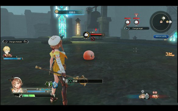相较于前作这次的《莱莎2》还增加了即时防御系统,看准时机完美防御还能为角色恢复AP。但由于视角和出招机制的问题,这个防御系统真实操作起来蛮鸡肋的。当一场战斗有多个敌人时,由于无法手动调整视角玩家在大多时间内只能看到一个敌人,这样的设定让玩家受到视角外的敌人攻击时很难躲避。如果你在攻击时敌人的行动条恰好涨满,那么敌人将会出招打断你的攻击并且防御不能,这个机制在面对BOSS时特别明显。