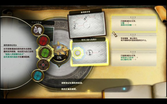 本作的剧情还是和前作一样慢热,当玩家第一次进入到遗迹时间已经过去了两个小时,等到副标题中的秘密妖精菲出现则又要花上一小时。进入遗迹后推动剧情全靠记忆微粒,记忆微粒以火种的形式出现在遗迹中,当莱莎触碰到记忆微粒后会出现人们从前的对话。对话过后莱莎会获得线索,在探究手册内放入对应的线索就可以解开尘封的往事。