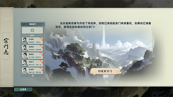 1、在本地下载并解压好游戏后,进入游戏主菜单,玩家可以自由选择建造宗庙,预设家门和创建新宗门。