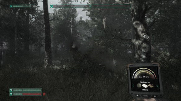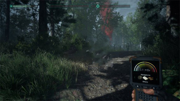 4、在地图上确认目标地点后尽量沿着树丛侧面移动,并且避开辐射值较高的区域。