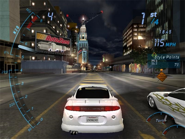 游戏中有一个开放的城市世界,玩家可以在城市中自由驾驶,寻找赛车事件和隐藏的路径。