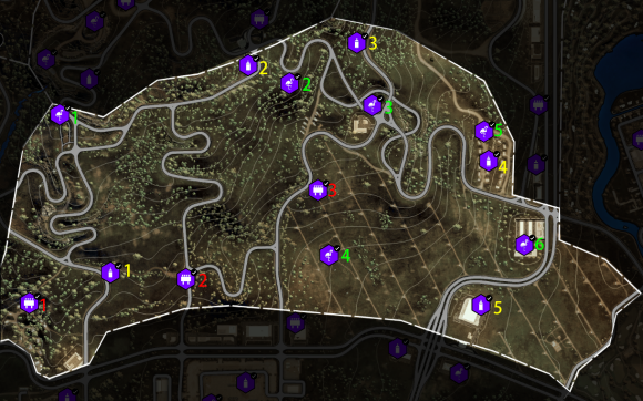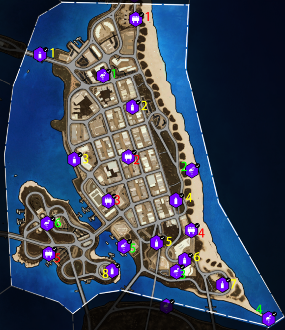 3、每一类活动及收藏品都已用用颜色序号标记(红色飞跃、黄色测速,绿色漂移;红色广告牌、黄色街头艺术、绿色火烈鸟);