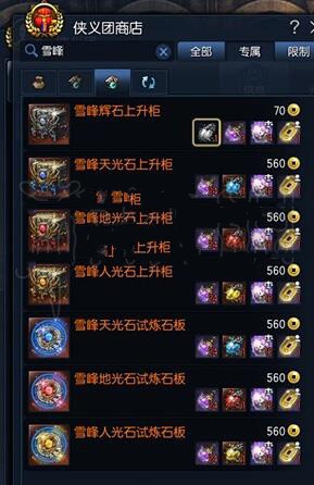 雪峰光石仅可通过侠义团商店购买雪峰光石上升柜,开启后概率获得随机属性。