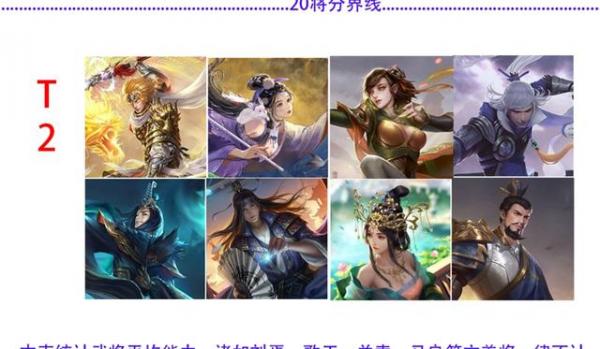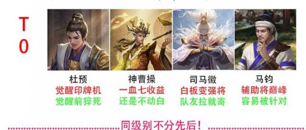 T0:这几个武将几乎都能在顷刻之间扭转战局,而且战斗力还相当稳定。这一梯队的武将不光是强度极高,而且在大部分情况下都能有着不俗的发挥。总的来说,他们既不会那么容易翻车,而且还能获得极佳的游戏体验。