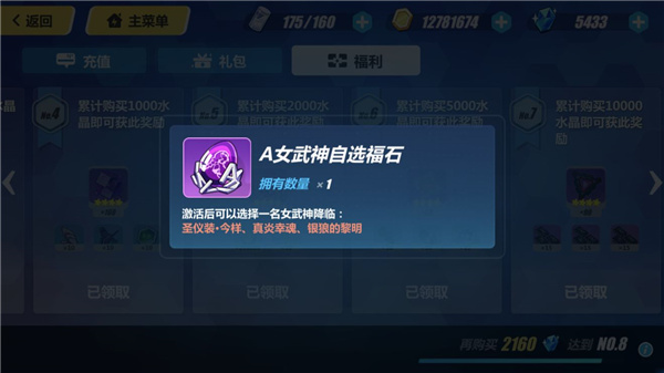 ★目前游戏内舰长累计购买2000水晶,可以在福利中获得A级女武神 今样、真炎、银狼三选一;而通过祈愿之池,可以通过6000水晶必定获得S级女武神 月光、次元、鬼铠三选一。