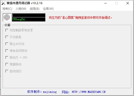 曹操传通用调试器(曹操传万能调试器)是一款三国志曹操传游戏的作弊辅助工具,玩家可以对游戏的一些属性进行修改,其中包括了可控制敌军和友军、不分敌我、禁止AI行动、待命后可以移动、移动力=255、穿越移动等,让你快乐玩游戏,轻轻松松mvp。