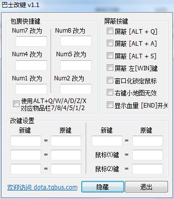 巴士改键是电玩巴士dota英雄站推出的一款改键显血工具。巴士改键具备自定义改键和显血以及屏蔽诸如“左win键”、“ALT+Q”以及自动更新等功能,极大方便了游戏操作。目前推出了简易版和扩展版两个版本,不同的是扩展版拥有更强大的改键方案管理功能,也就是用户可以保存各种不同的改键方案,针对不同英雄做不同的改键,并且支持组合按键,所以可以实现卡尔一键切技能等强大功能。总得来说,巴士改键是魔兽玩家必备的工具,简单快捷,软件虽小但能大大增加游戏的乐趣,有需要的玩家可以下载体验。