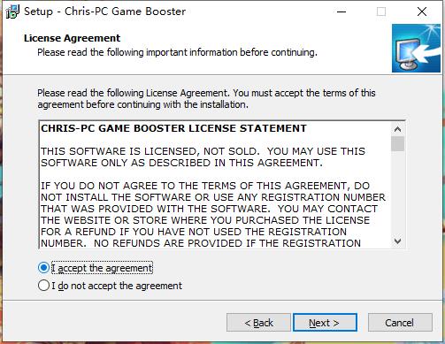 安装向导默认设置的软件默认安装路径为C:\Program Files (x86)\Chris-PC Game Booster