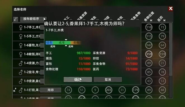 4、玩家可以在这里直观的根据能力值来选择角色作为自己需要拜的师傅