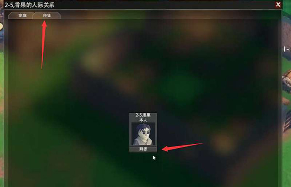 3、之后在人际关系中选择师徒,就可以在这里找到拜师的选项了